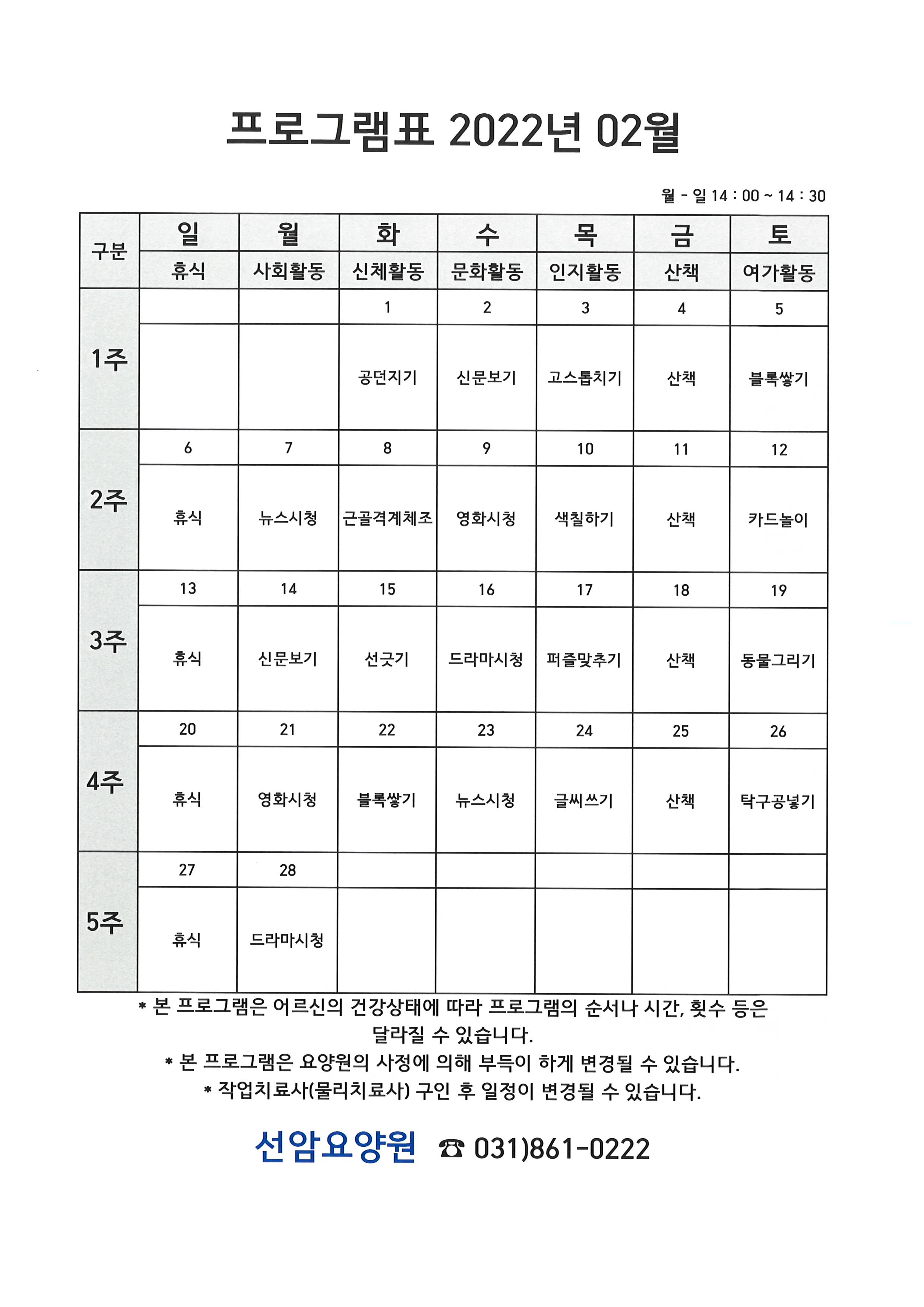 2022년 2월 프로그램 일정표