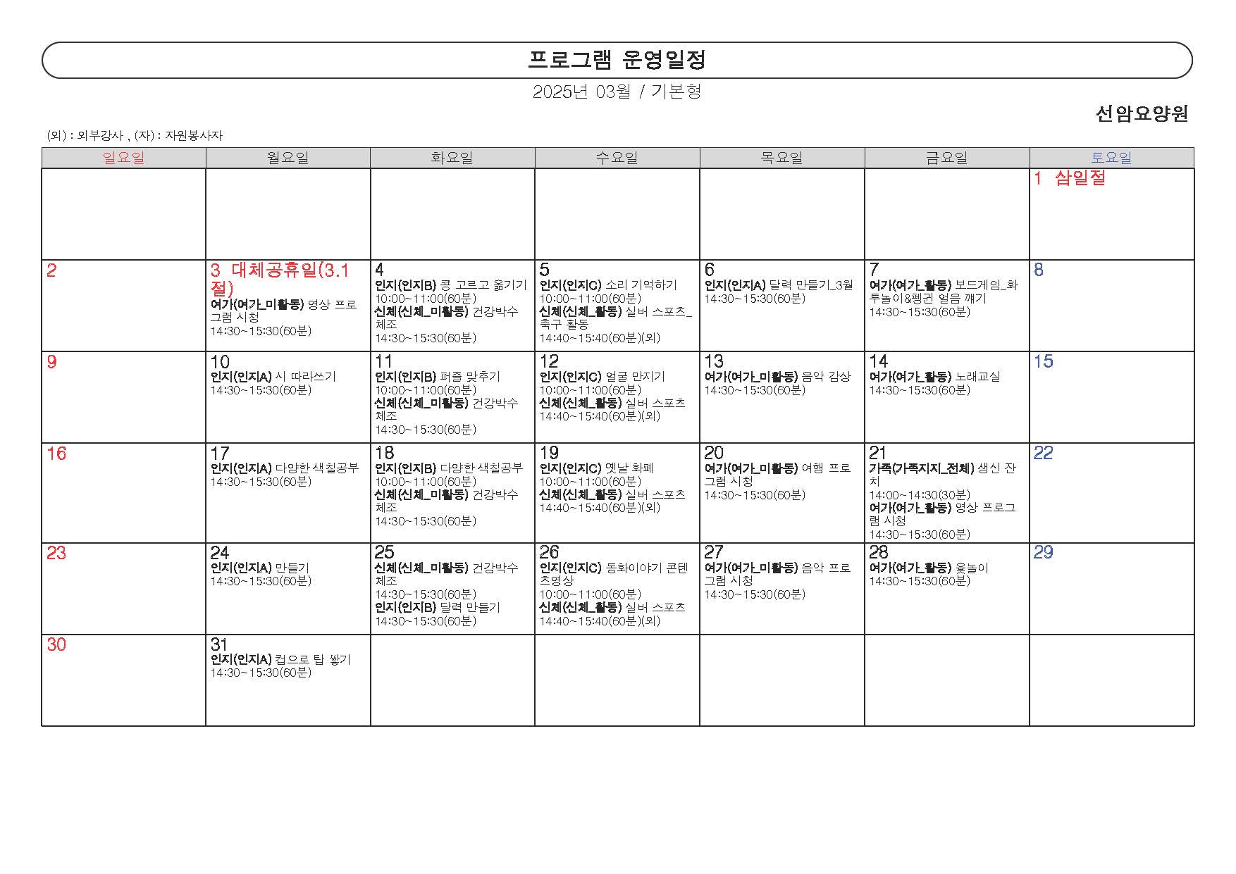 2025년 3월 프로그램 일정표
