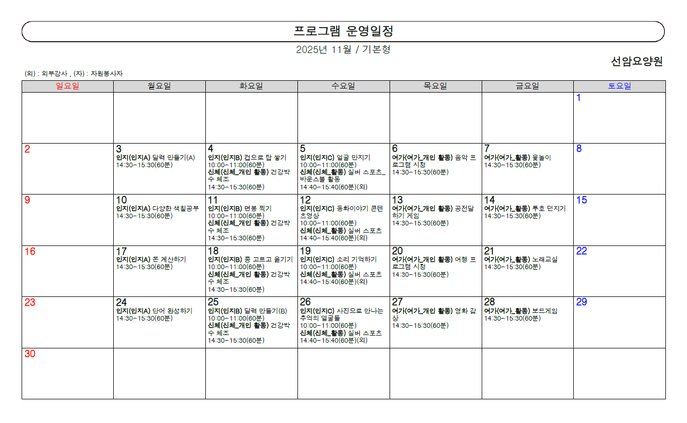 2025년 11월 프로그램 일정표