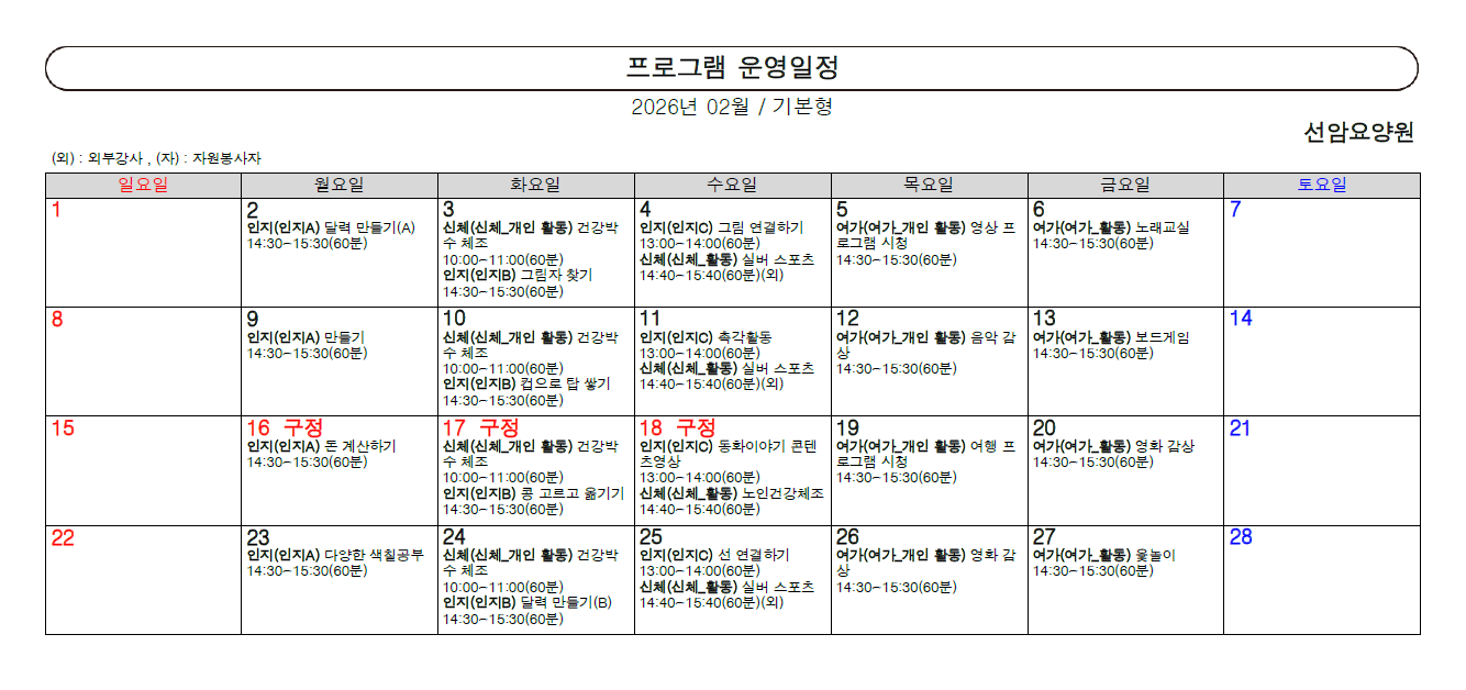 2026년 2월 프로그램 일정표