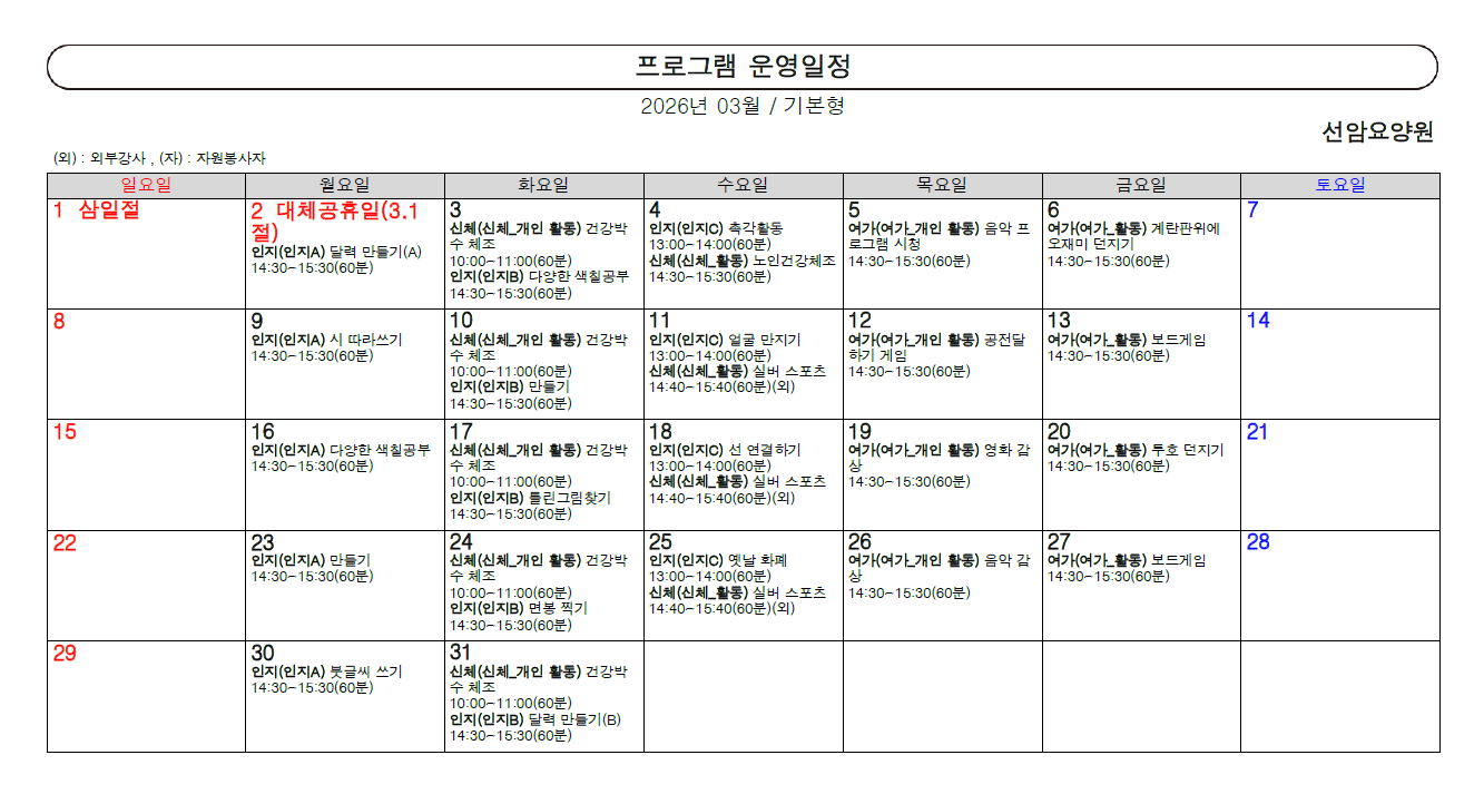 2026년 3월 프로그램 일정표